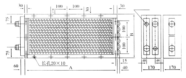 翅片管均用416×1mm紫銅管紅制上10×0.2mm的皺折紫銅帶而成,呈螺旋狀,具有3.2mm一“R”,4.2mm—“M”,6.5mm—“T”三種不同的片距, “R”種片別具匠心,片距小而散熱面積大具有大的散熱量;“M”種片距,片距較大,散熱量及空氣阻力均較小;“T”種片距,片距大,經久耐用,安裝方便,經濟合算。