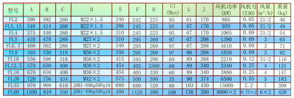 型號(hào)含意:例:FL20是指FL空氣冷卻器,20是指換熱面積(寸)。