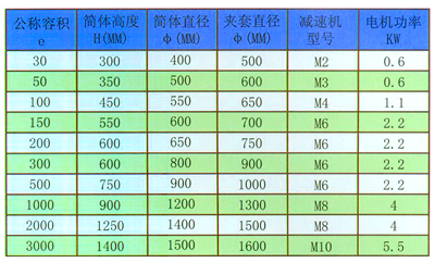 反應鍋主要技術參數